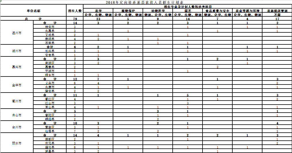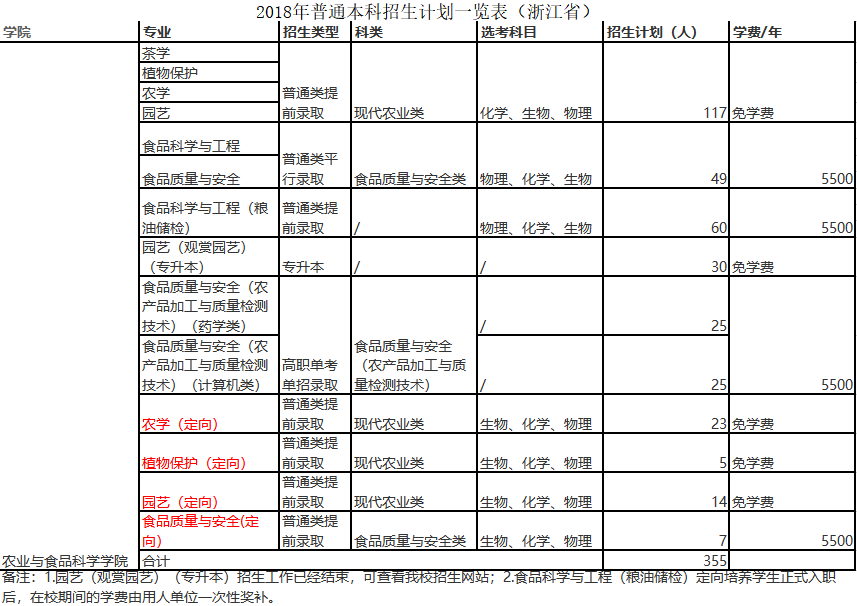 农业与食品科学学院2018年招生计划