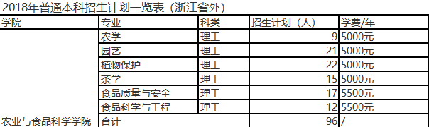 农业与食品科学学院2017年在浙江省录取分数情况