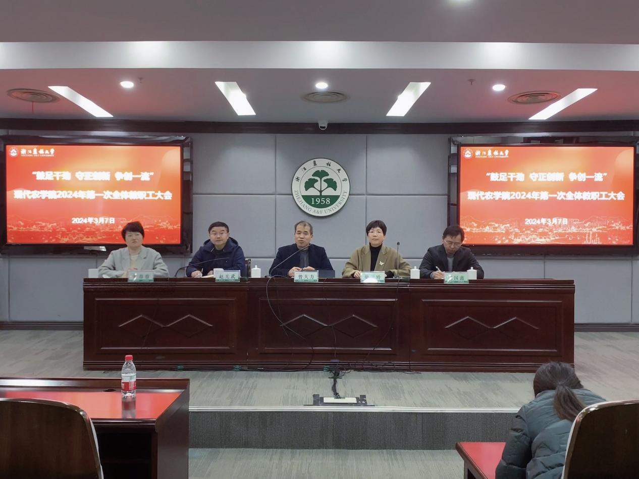 学院院长曾大力表示2024年是全面贯彻落实党的二十大精神的关键之年,是深入实施“十四五”规划的攻坚之年,并从党建与思政、教育教学、学科建设、国际合作与交流、科学研究、社会服务、学生管理等方面全面部署2024年重点工作。他强调,全体教职工要认真贯彻落实本次会议精神,把思想和行动统一到学院确定的目标任务和部署要求上来,鼓足干劲,真抓实干,勇担使命,迎接挑战,推动学院工作再上新台阶,为打造高水平农学院贡献智慧和力量。