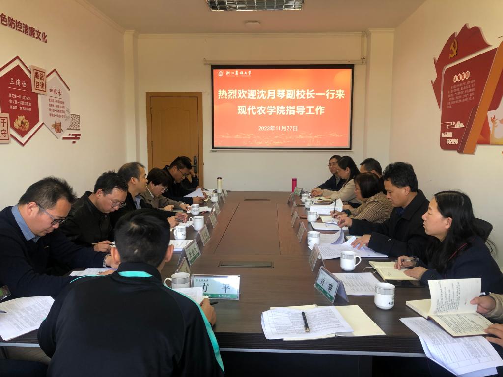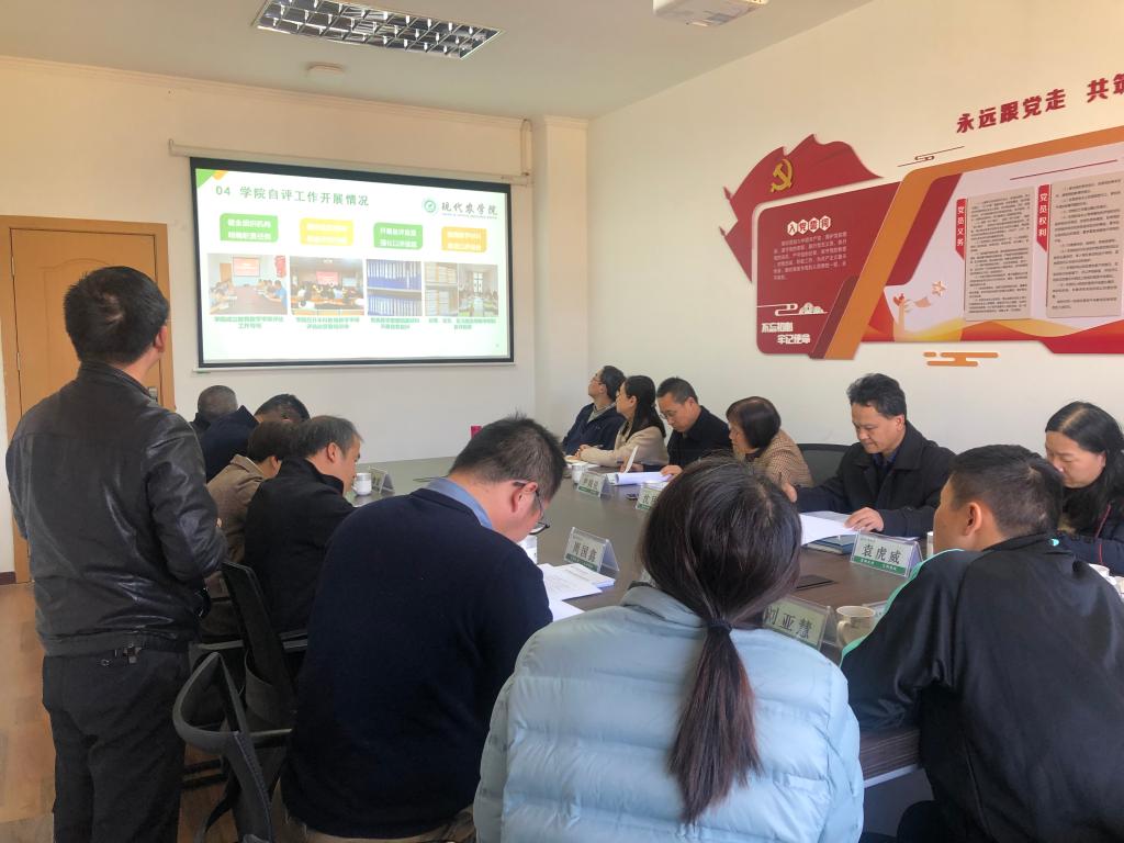 1127午,沈月琴副校长一行来院调研指导。教务处、教学质量监控与评估中心等部门负责人陪同调研。学院院长曾大力、副院长周国鑫、党委副书记宋春春及专业负责人、教学督导、辅导员、教学秘书参加会议。
