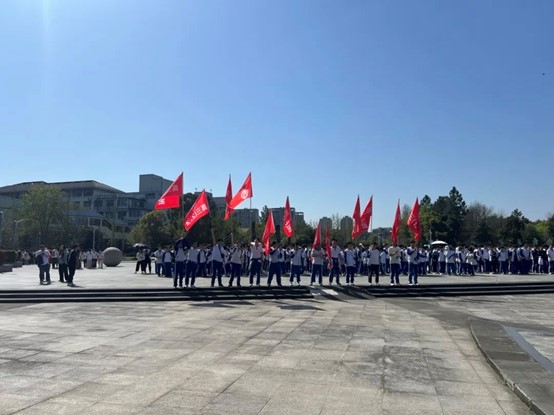 上午学院在学校五舟广场欢迎各位同学的到来,并在此进行合影留念。学院以1-2名学生志愿者为一组,每个组对接一个班级。在志愿者的协助引导下,各班级沿着东湖参观校园,观赏沿途的建筑和风景,感受我校“求真敬业”的校训。