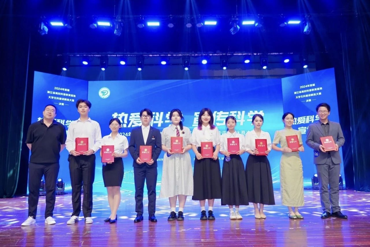 6月16日,首届浙江省高校科普教育基地大学生科普讲解员大赛决赛在浙江理工大学圆满落幕。我校学子获得省级一、二、三等奖各1项;学校获大赛“优秀组织奖”。