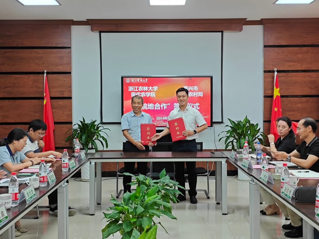 会上,学院党委与嘉兴市农业农村局党委正式签订了党建共建协议,学院与嘉兴市农业农村局签订了院地合作协议。