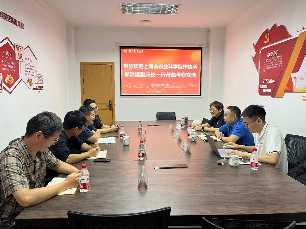 7月29日,上海市农业科学院作物所副所长郑洪建一行3人来院调研,洽谈合作事宜。科技处副处长甘毅、学院副院长赵光武和作物学科相关教师参加会议。