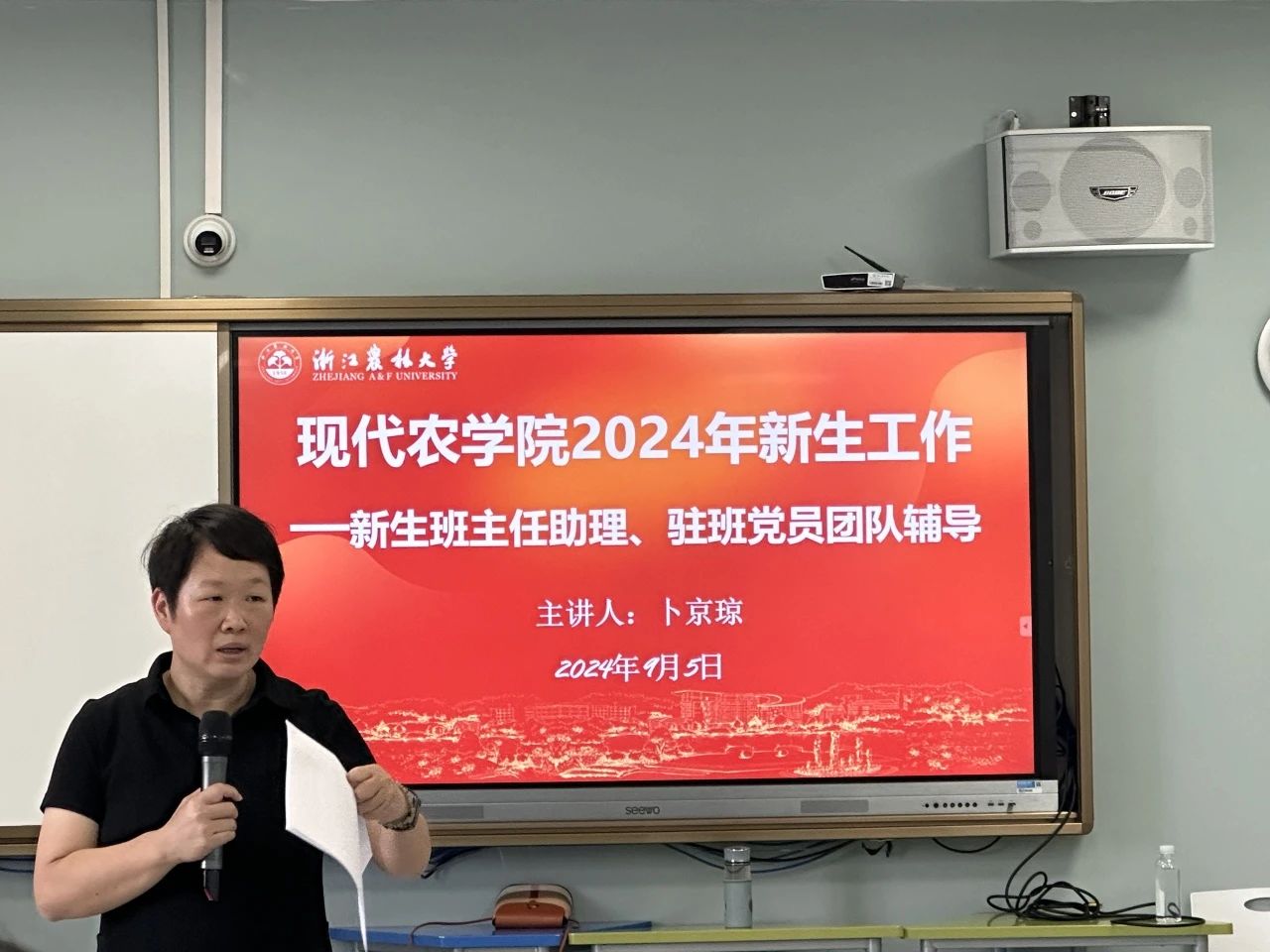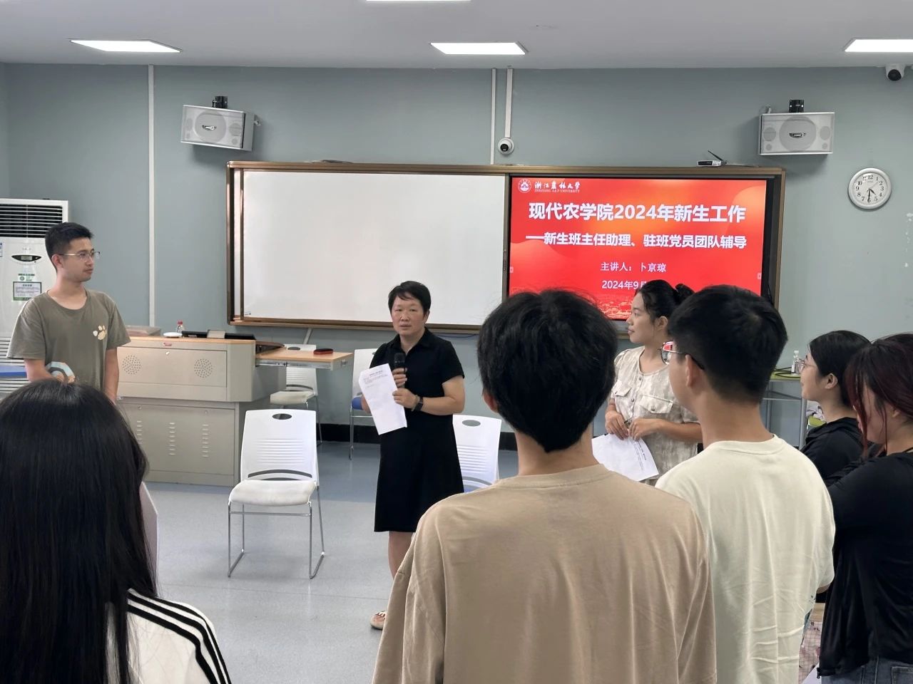 9月5日,学院于教1-213开展2024年新生工作——新生班主任助理、驻班党员团队辅导,林业与生物技术学院心理辅导站站长、校心理中心兼职心理咨询师卜京琼受邀主讲,24级新生各班班主任助理和驻班党员参加。