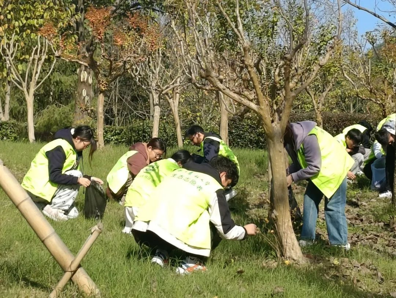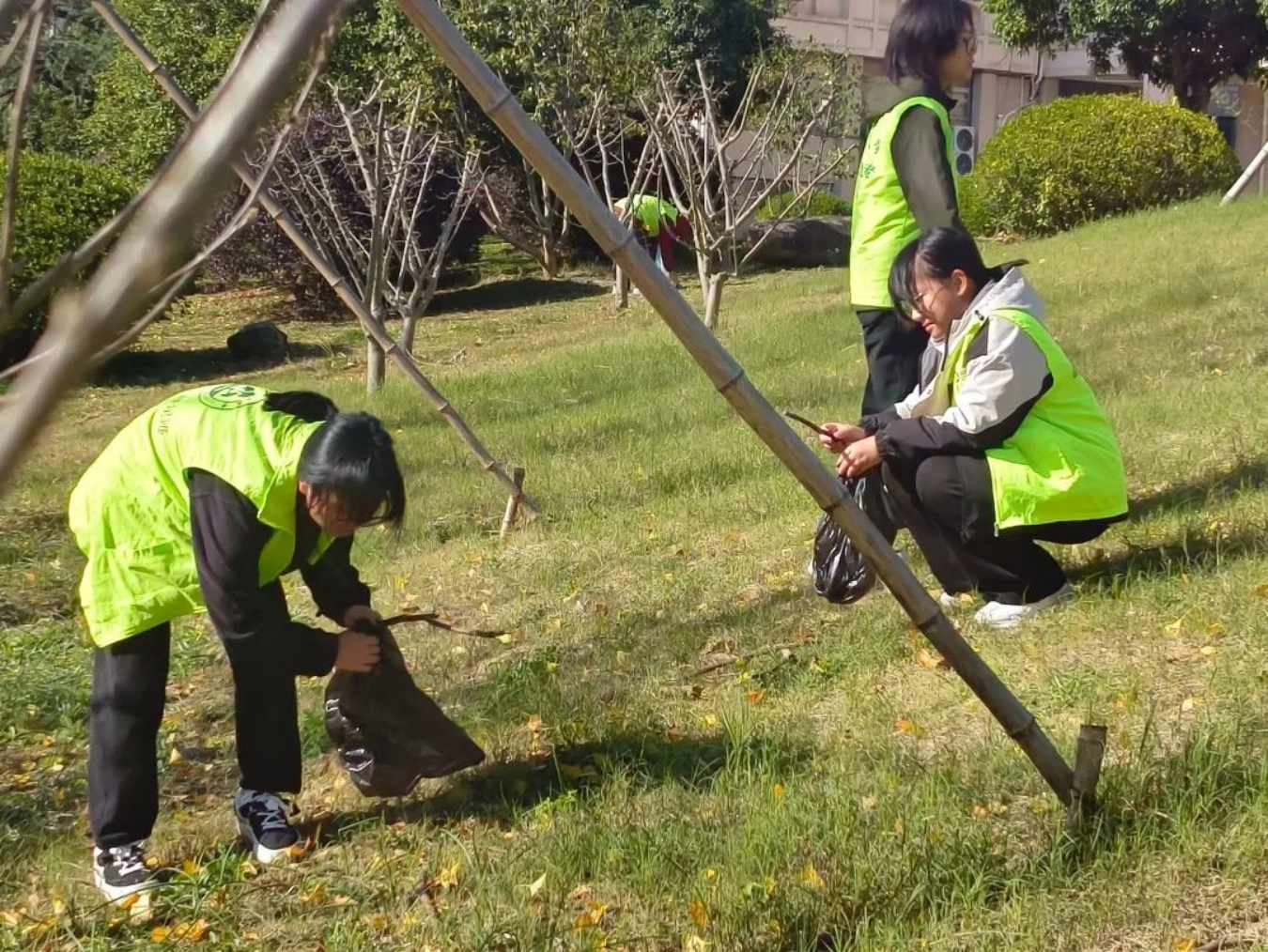 同学们提前到达指定地点,并在工作人员的指引下完成活动签到以及领取志愿服等准备工作。在活动中,大家分工明确,各司其职,认真完成捡拾落叶与垃圾、清理杂草等工作,为校园环境和生态发展贡献力量。