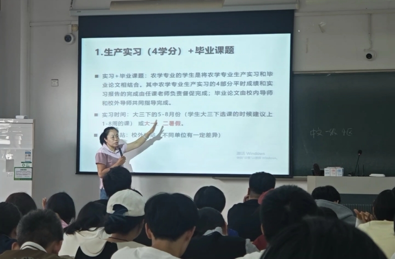 随后,李老师为同学们介绍了农学专业教师队伍,分享了选导师相关的经验与注意事项,鼓励同学们按兴趣方向选择适合自己未来发展的导师,助力成长成才。