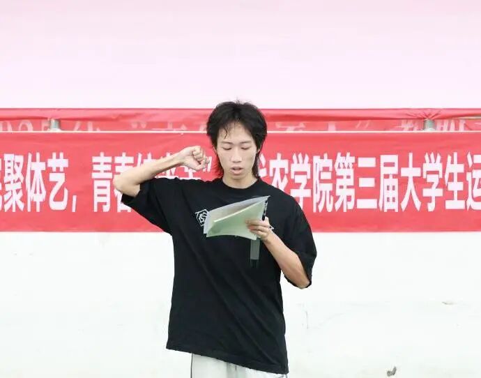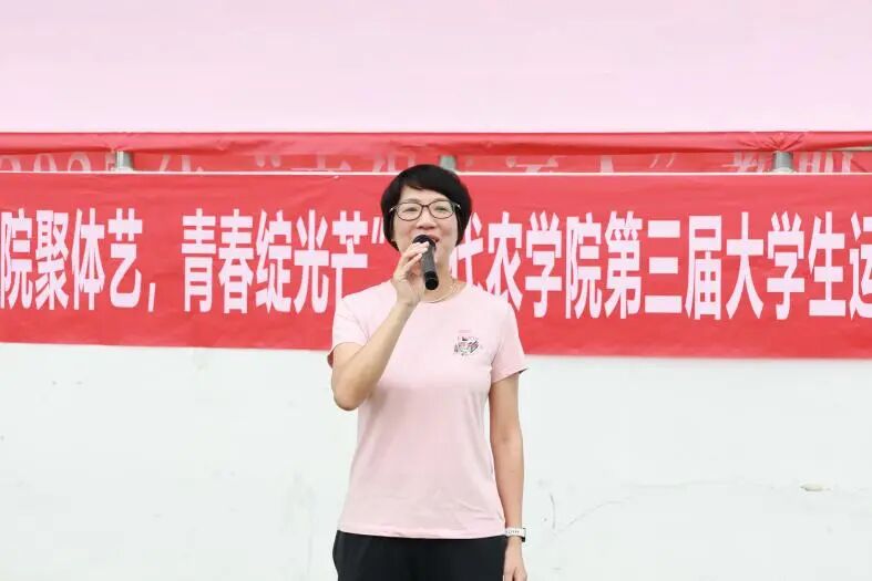 梁卫玲致开幕词,她指出,各位同学要接续农院学子敢想敢拼的冲劲,贯彻浙农林大“无体艺 不农林”的体艺思想,奋勇争先、顽强拼搏,赛出水平、赛出风采。