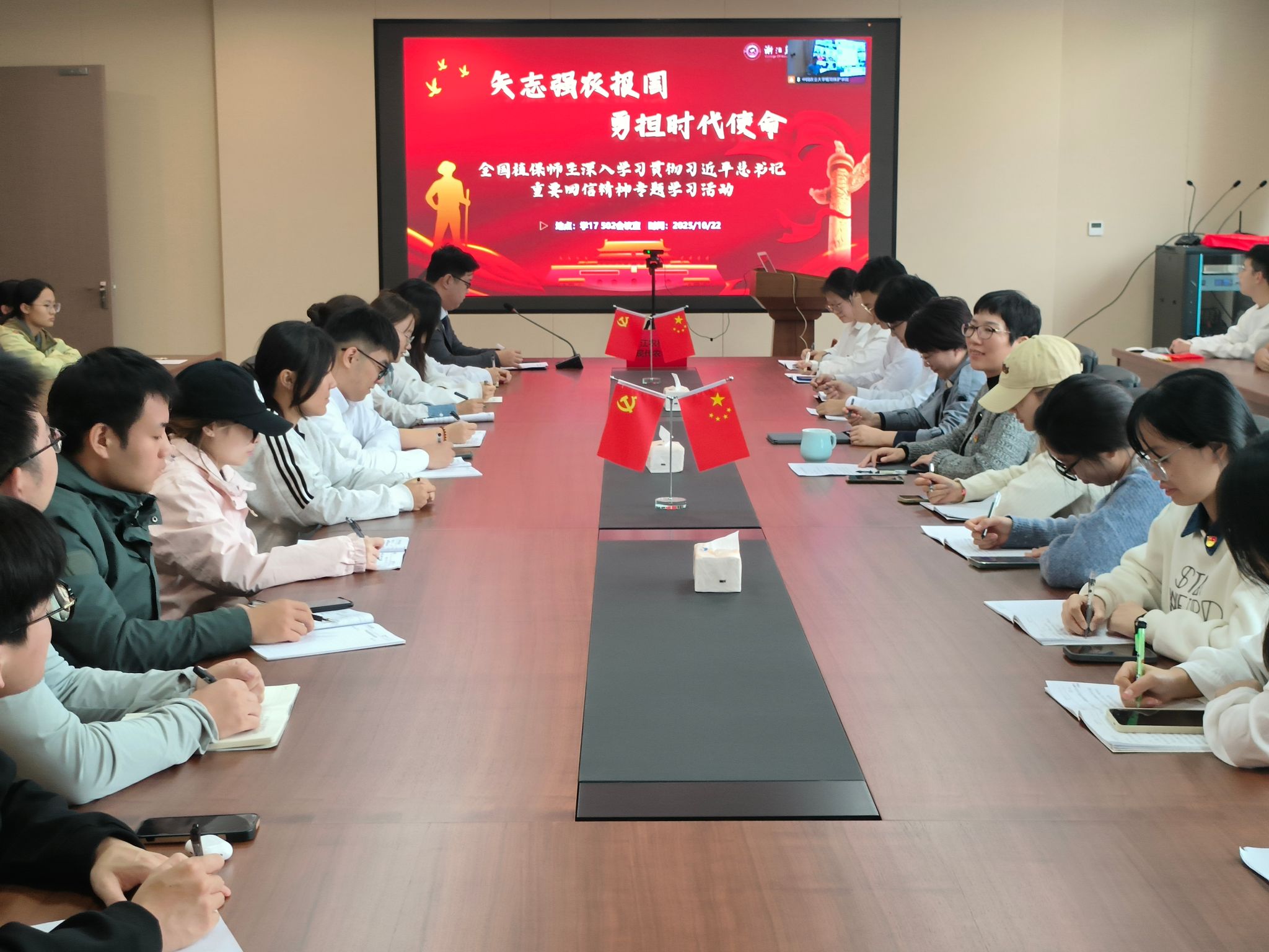 本次活动的每个主题分享都引发了现场师生的强烈共鸣,大家不时提笔记录关键观点,在互动环节通过线上留言区积极参与讨论。后续,学院也将以此次联学共建活动为契机,持续加深对习近平总书记重要回信精神的学习领悟,通过组织主题班会、学术沙龙、实践调研等系列活动,引导更多植保学子树立“强农有我、振兴有我”的理想信念,同时加强与全国兄弟院校的交流合作,在人才培养、科研创新、成果转化等方面持续发力,为推动我国植保事业发展、助力乡村振兴贡献力量。