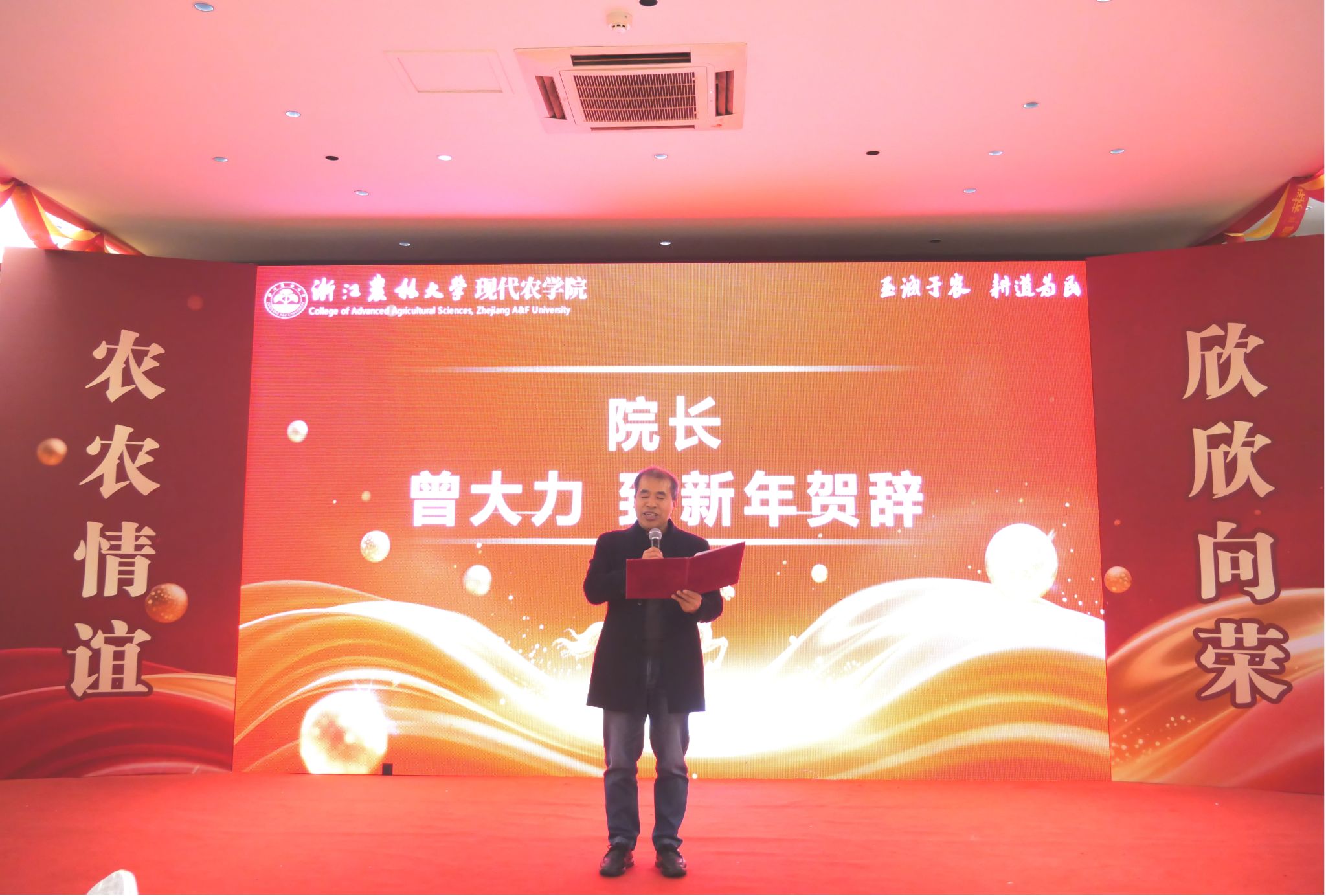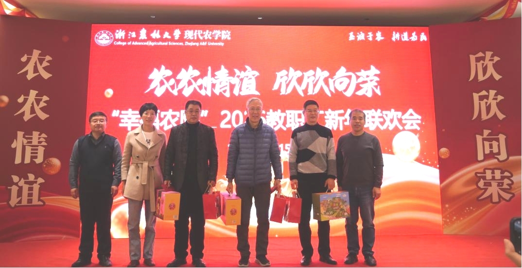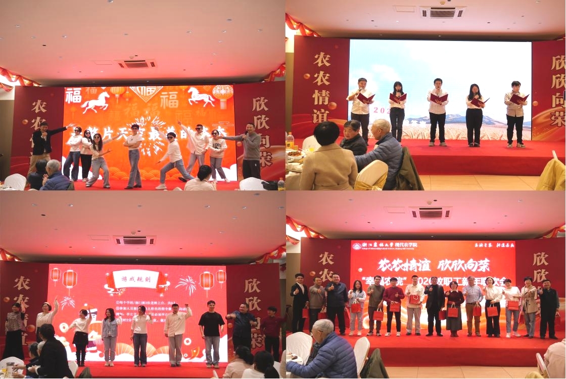 2026年1月15日,学院“农农情谊·欣欣向荣”2025年度教职工联欢会在西径三楼隆重举行。全院教职工欢聚一堂,共话过往成就,共迎新春新程。学院退休教师胥亮、徐志宏、汪一明应邀出席,学院党政领导班子全体成员全程参与活动。
