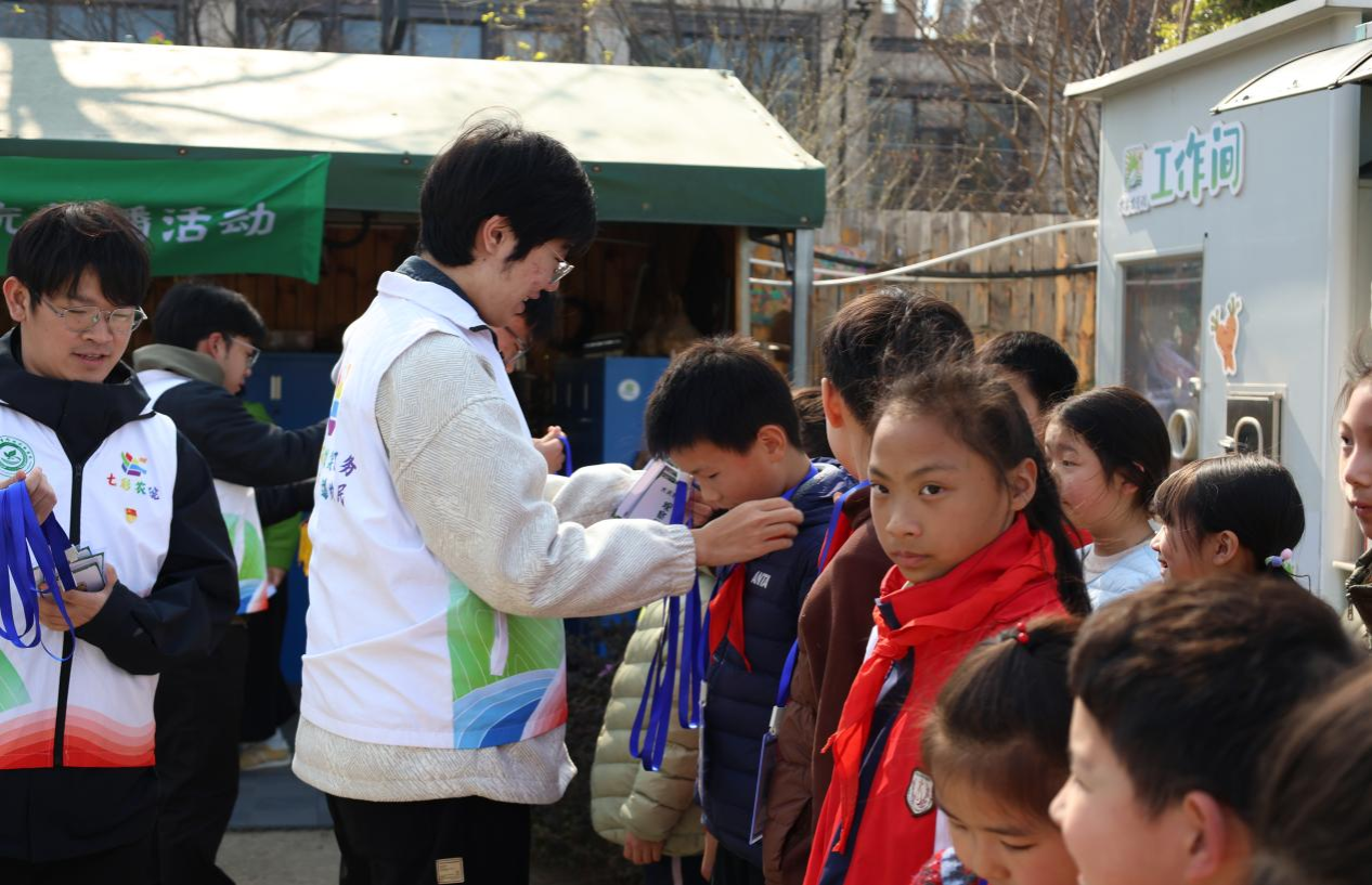 在随后的聘任授证仪式上,学院志愿者为“小观察员”们郑重挂牌。从今天起,孩子们将肩负起观察记录、守护植物的责任,在实践中学习,在记录中成长,努力成为真正的“小小农学家”。