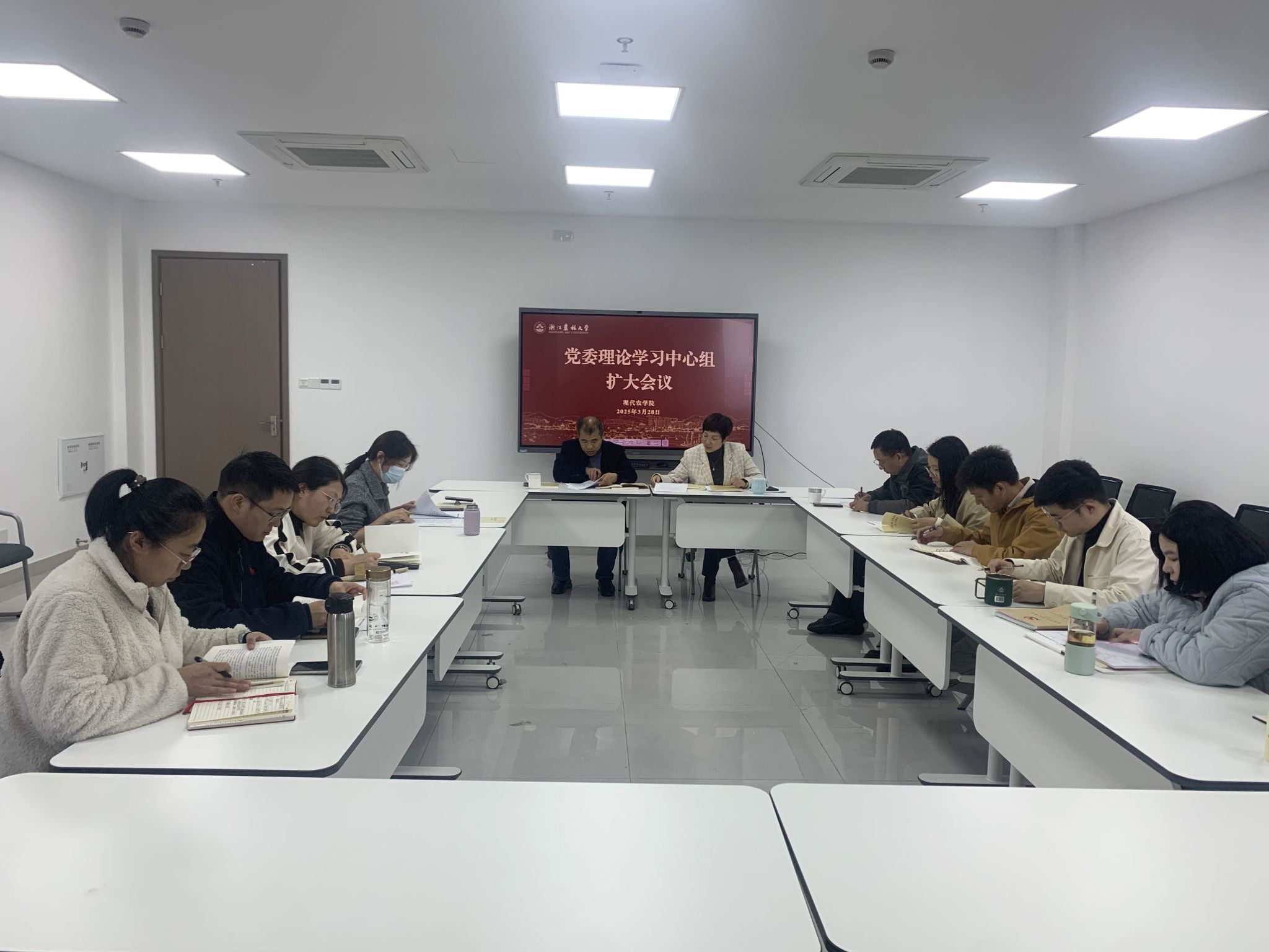 3月28日,学院召开党委理论学习中心组扩大会议,学习习近平总书记历次重要指示批示和回信精神,学习习近平文化思想,学习贯彻习近平总书记关于深入贯彻中央八项规定精神学习教育的重要讲话和重要指示精神,研究部署开展深入贯彻中央八项规定精神学习教育工作,传达学习全国两会精神,贯彻落实教育强国、教育强省规划纲要等精神。