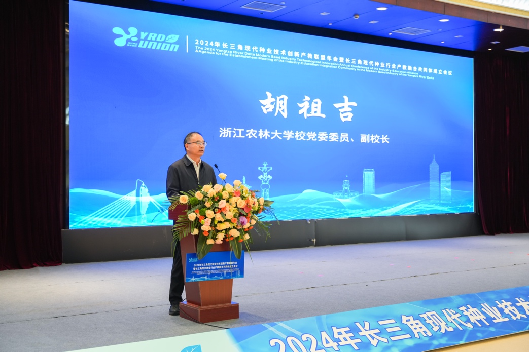 副校长胡祖吉在成立大会上致辞。他表示,长三角地区是我国经济发展的重要引擎和创新高地,在推动农业现代化和种业科技创新方面具有独特优势。williamhill体育中文作为共同体的牵头发起单位之一,将充分发挥科技和人才优势,为共同体建设提供有力支撑。