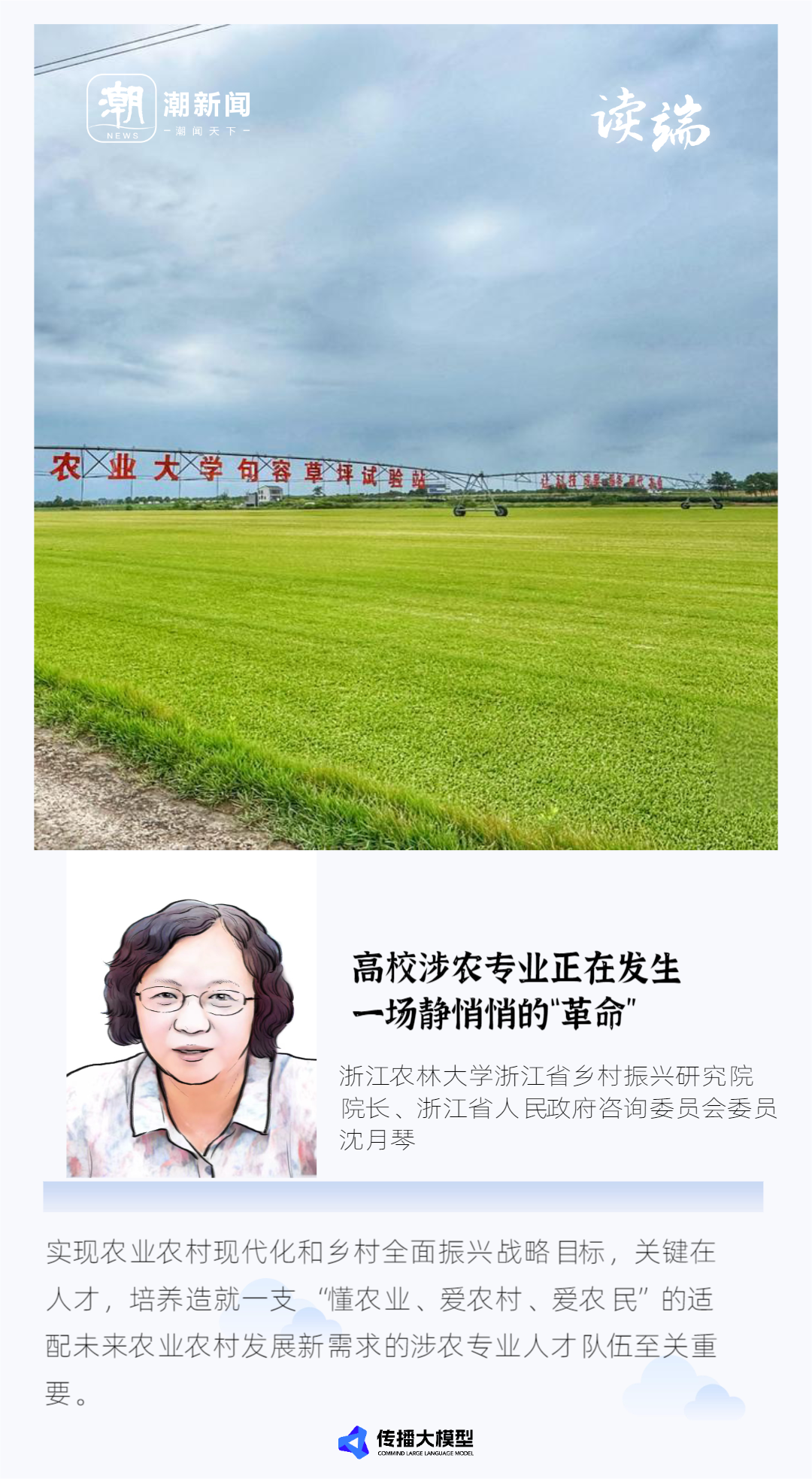 实现农业农村现代化和乡村全面振兴战略目标,关键在人才,培养造就一支“懂农业、爱农村、爱农民”的适配未来农业农村发展新需求的涉农专业人才队伍至关重要。