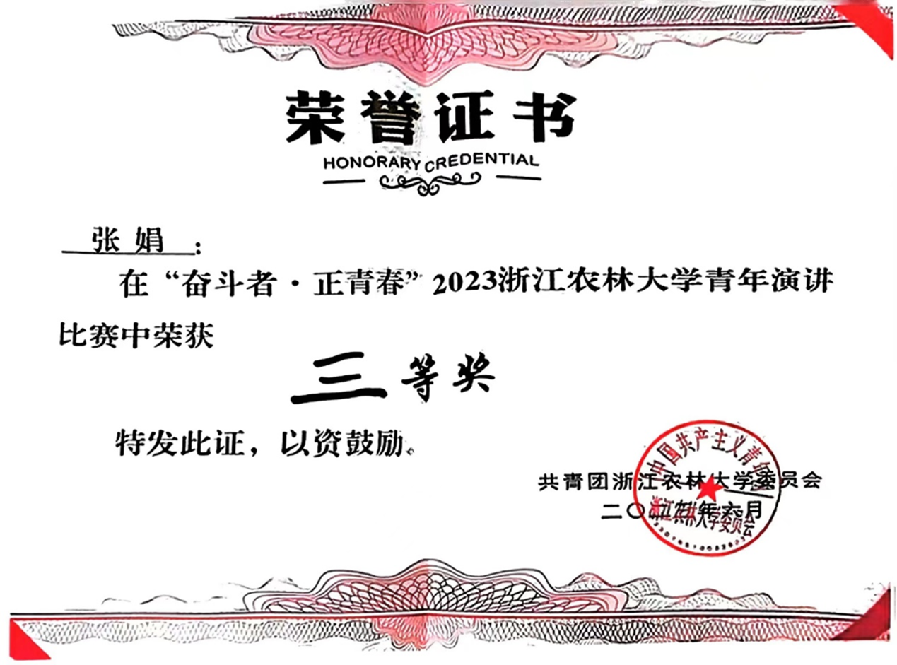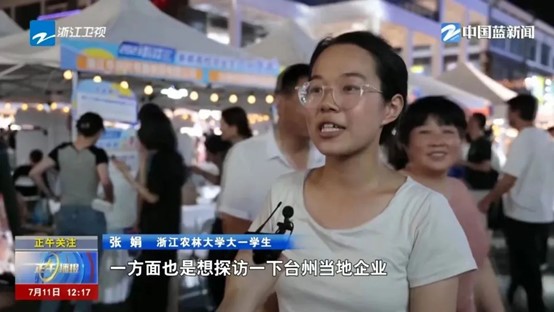 2023年暑期期间,张娟带队前往台州市当地人才服务中心和企业进行实践调研。在前往台州市人才服务中心时,她向工作人员分享了学校的校园招聘信息。团队的实践成果不应只是书面宣传,而是要真正地为社会、为学校做点事。在探访人才夜市时,张娟接受了中国蓝新闻的采访,扩大了团队的影响力。她代表团队在学校暑期社会实践风采展上全方位地展示了团队实践成果,最终团队获评学校“十佳团队”。她希望实践成果为学校毕业生就业和政府政策提供一定的参考性意见,同时她也会继续深入了解和跟进就业政策信息,为推动学生就业而献出一份力。