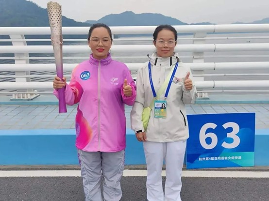 恰逢杭州亚运会、亚残运会之际,张娟参与了杭州站亚运会火炬传递、淳安站-桐庐站-萧山站亚残运会火炬传递志愿服务。近距离地感受着亚运精神的她,倍感幸运和自豪。她说:“每一次志愿服务对我来说都是新鲜且有意义的,在与社会接轨的同时我更探索着我自身存在的意义。”