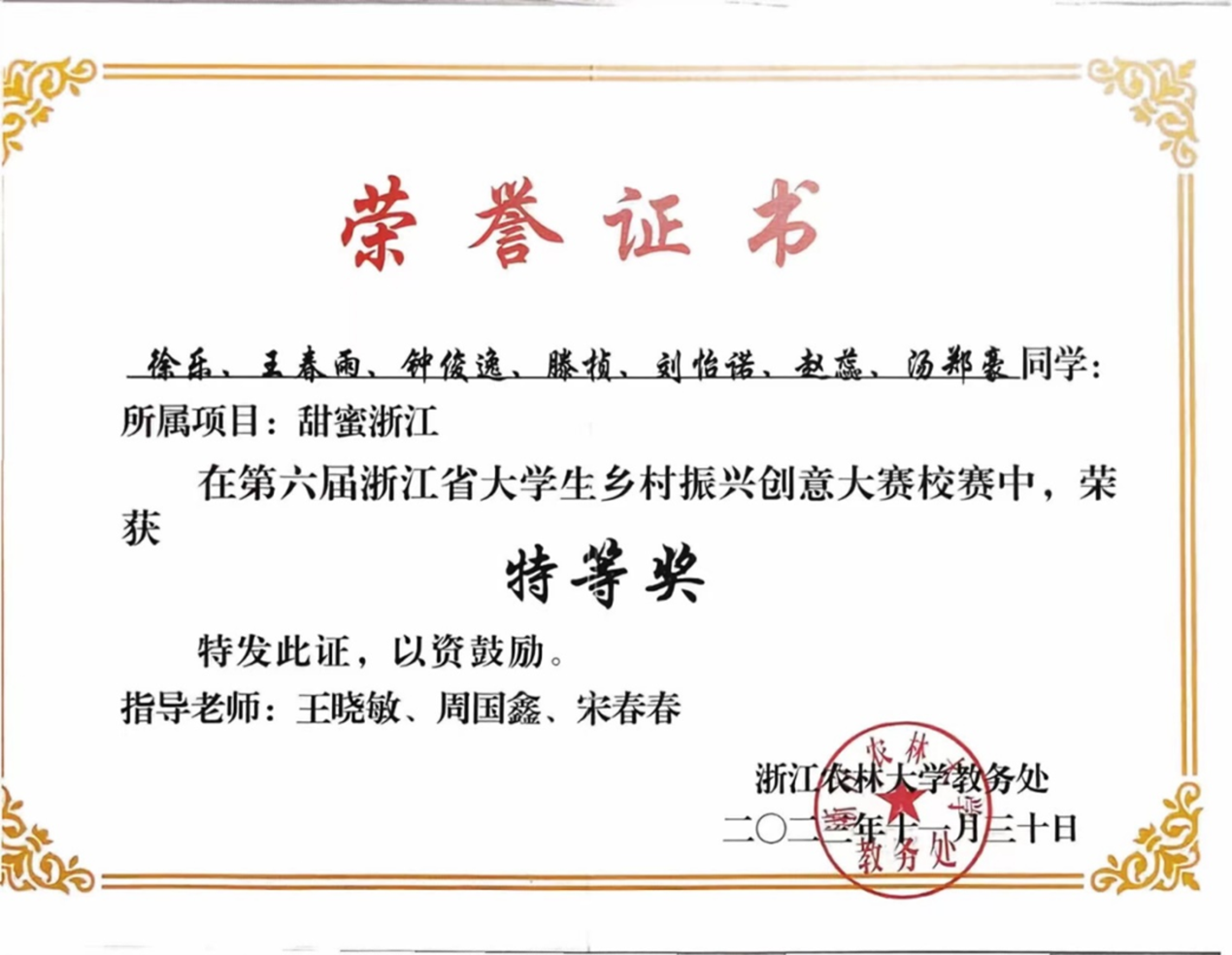 第六届浙江省大学生乡村振兴创意大赛校赛特等奖