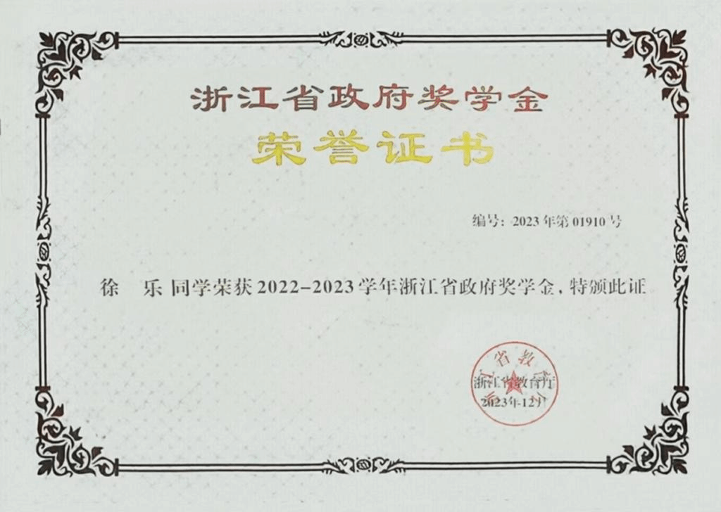 浙江省政府奖学金1次
