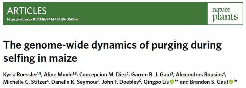 近日,农学院刘庆坡教授与美国加州大学欧文分校生态与进化生物学系Brandon S. Gaut教授研究团队在玉米基因组进化机制研究方面取得重要进展,研究成果以“The genome-wide dynamics of purging during selfing in maize”为题在《Nature Plants》(2018年期刊影响因子13.297)上发表。刘庆坡和Brandon S. Gaut为通讯作者。
